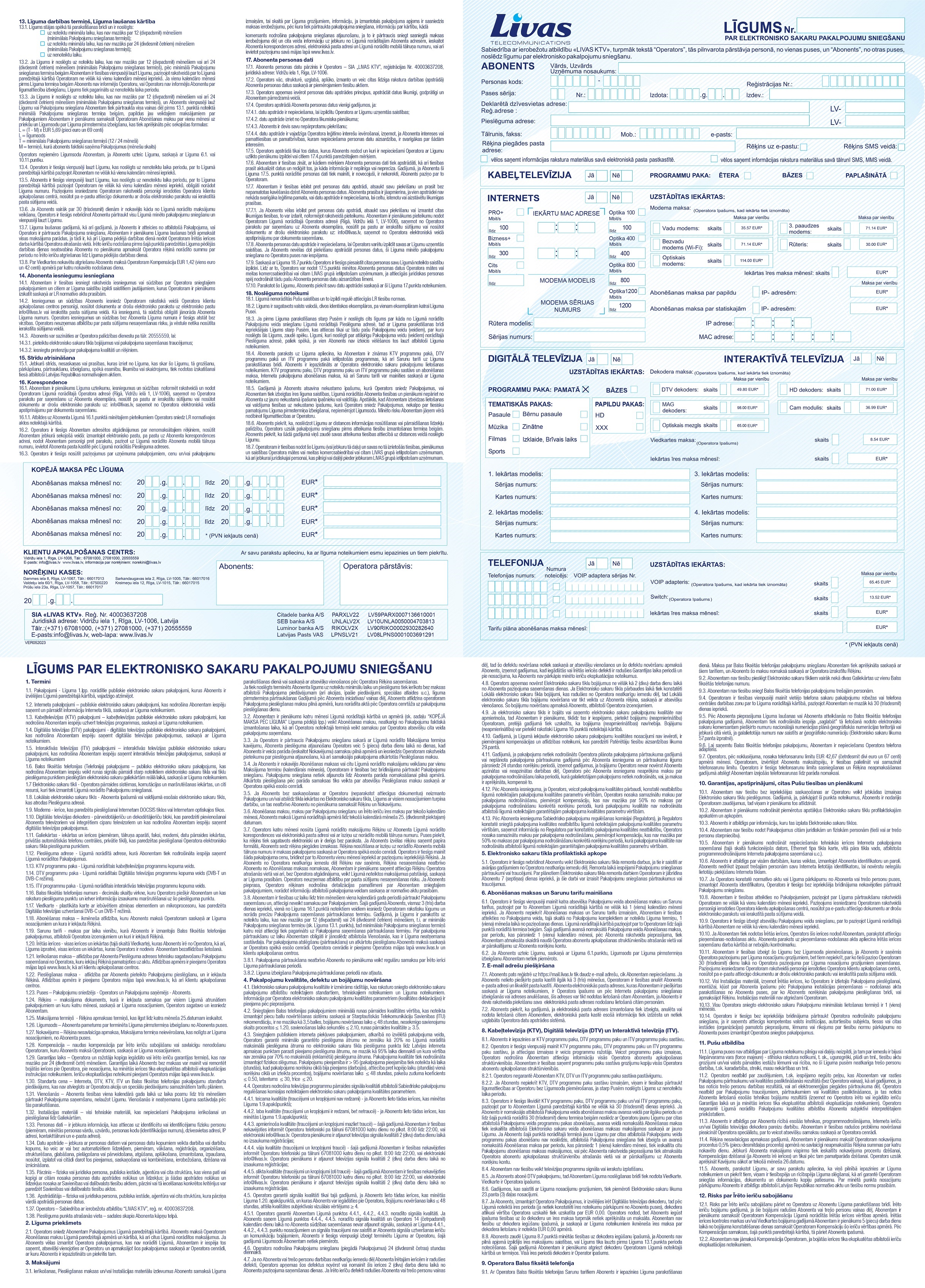 SIA LIVAS KTV pakalpojumu un materiālu cenrādis: